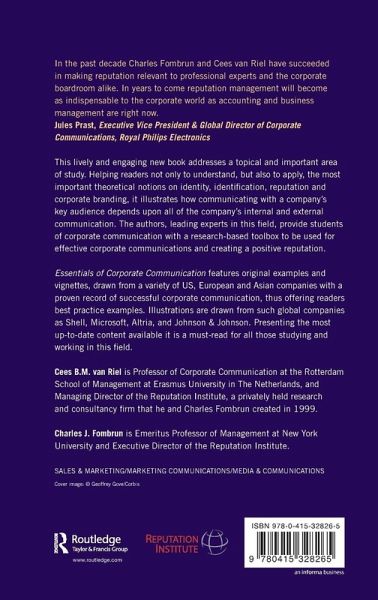 "In the past decade Charles Fombrun and Cees van Riel have succeeded in making reputation relevant to professional experts and the corporate boardroom alike. In years to come reputation management will become as indispensable to the corporate world as accounting and business management are right now."--Jules Prast, Executive Vice President & Global Director of Corporate Communications, Royal Philips Electronics