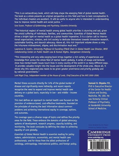 'Encyclopedic, diverse, and thoughtful ... Essentials of Global Mental Health is a volume that practitioners, researchers, educators, and policy makers will find themselves turning to often. It offers an incredibly wide array of international voices.' PsycCRITIQUES