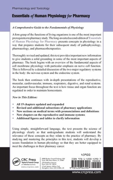 Designed as a resource for pharmacy and health science students, Essentials of Human Physiology for Pharmacy, Second Edition emphasizes the connection and relevance of physiology to pharmacy practice. Every chapter is updated and expanded and new chapters are included on the immune system and the reproductive system. Revised pharmacy applications demonstrate basic principles in physiology and their use in pharmacy practice. Each chapter also offers medical terminology, including definitions, associated terms, and pronunciations, as well as relevant drugs used to treat the disorders discussed, explaining their classifications and therapeutic actions.