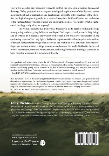 Only a few decades past, academia tended to scoff at the very idea of serious Pentecostal theology. Today profound and variegated theological implications of this dynamic movement are the object of exploration and development across the entire spectrum of the Christian theological corpus. Arguably, an acute need has arisen for identification and evaluation of the Pentecostal movement's original and ongoing theological ""essentials."" What is Pentecostal theology really all about anyway? This volume realizes that Pentecostal theology is at its heart a working theology undergirding and energizing believers' worship of God in prayer and praise, in holy living, and in witness to a personal experience of the risen Lord and Savior manifested in the continuing power of the Holy Spirit. Authentic implementation, if not explicit articulation, of fervent Pentecostal theology often occurs in the vitality of local churches, house fellowships, and various mission settings in America and around the world. Birthed in the fires of revival movements, essential Pentecostalism, including Pentecostal theology, continues to burn brightest wherever it is fueled most directly.