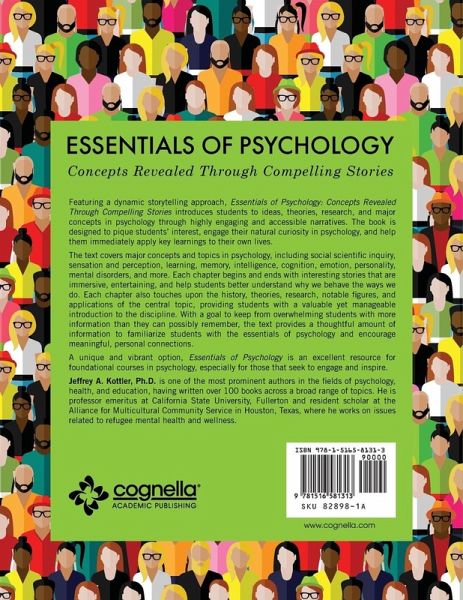 Featuring a dynamic storytelling approach, Essentials of Psychology: Concepts Revealed Through Compelling Stories introduces students to ideas, theories, research, and major concepts in psychology through highly engaging and accessible narratives. The book is designed to pique students' interest, engage their natural curiosity in psychology, and help them immediately apply key learnings to their own lives. The text covers major concepts and topics in psychology, including social scientific inquiry, sensation and perception, learning, memory, intelligence, cognition, emotion, personality, mental disorders, and more. Each chapter begins and ends with interesting stories that are immersive, entertaining, and help students better understand why we behave the ways we do. Each chapter also touches upon the history, theories, research, notable figures, and applications of the central topic, providing students with a valuable yet manageable introduction to the discipline. With a goal to keep from overwhelming students with more information than they can possibly remember, the text provides a thoughtful amount of information to familiarize students with the essentials of psychology and encourage meaningful, personal connections. A unique and vibrant option, Essentials of Psychology is an excellent resource for foundational courses in psychology, especially for those that seek to engage and inspire. Jeffrey A. Kottler is one of the most prominent authors in the fields of psychology, health, and education, having written over 100 books across a broad range of topics. He is professor emeritus at California State University, Fullerton and resident scholar at the Alliance for Multicultural Community Service in Houston, Texas, where he works on issues related to refugee mental health and wellness.