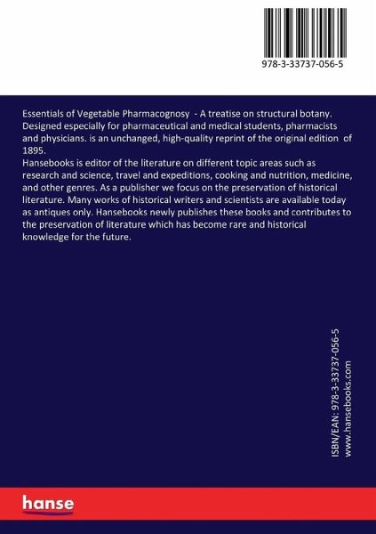 Essentials of Vegetable Pharmacognosy - A treatise on structural botany. Designed especially for pharmaceutical and medical students, pharmacists and physicians. is an unchanged, high-quality reprint of the original edition of 1895.