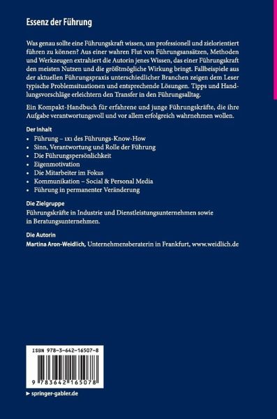 Was genau sollte eine Führungskraft wissen, um professionell und zielorientiert führen zu können? Aus einer wahren Flut von Führungsansätzen, Methoden und Werkzeugen extrahiert die Autorin jenes Wissen, das einer Führungskraft den meisten Nutzen und die größtmögliche Wirkung bringt. Fallbeispiele aus der aktuellen Führungspraxis unterschiedlicher Branchen zeigen dem Leser typische Problemsituationen und entsprechende Lösungen. Tipps und Handlungsvorschläge erleichtern den Transfer in den Führungsalltag. Ein Kompakt-Handbuch für erfahrene und junge Führungskräfte, die ihre Aufgabe verantwortungsvoll und vor allem erfolgreich wahrnehmen wollen.
