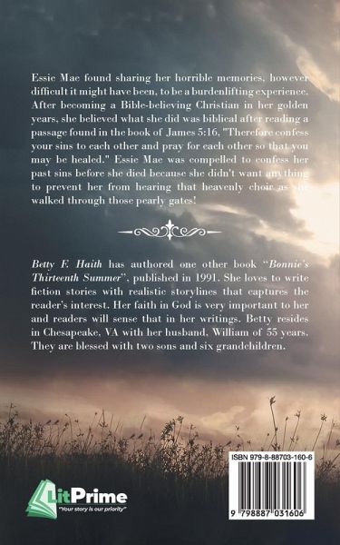 Essie Mae found sharing her horrible memories, however difficult it might have been, to be a burden-lifting experience. After becoming a Bible-believing Christian in her golden years, she believed what she did was biblical after reading a passage found in the book of James 5:16, "Therefore confess your sins to each other and pray for each other so that you may be healed." Essie Mae was compelled to confess her past sins before she died because she didn't want anything to prevent her from hearing that heavenly choir as she walked through those pearly gates!
