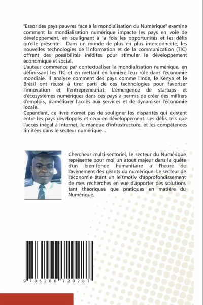 "Essor des pays pauvres face à la mondialisation du Numérique'' examine comment la mondialisation numérique impacte les pays en voie de développement, en soulignant à la fois les opportunités et les défis qu'elle présente. Dans un monde de plus en plus interconnecté, les nouvelles technologies de l'information et de la communication (TIC) offrent des possibilités inédites pour stimuler le développement économique et social. L'auteur commence par contextualiser la mondialisation numérique, en définissant les TIC et en mettant en lumière leur rôle dans l'économie mondiale. Il analyse comment des pays comme l'Inde, le Kenya et le Brésil ont réussi à tirer parti de ces technologies pour favoriser l'innovation et l'entrepreneuriat. L'émergence de startups et d'écosystèmes numériques dans ces pays a permis de créer des milliers d'emplois, d'améliorer l'accès aux services et de dynamiser l'économie locale.Cependant, ce livre n'omet pas de souligner les disparités qui existent entre les pays développés et ceux en développement. Les défis tels que l'accès inégal à Internet, le manque d'infrastructure, et les compétences limitées dans le secteur numérique...