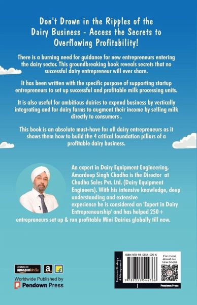 Don't Drown in the Ripples of the Dairy Business - Access the Secrets to Overflowing Profitability! There is a burning need for guidance for new entrepreneurs entering the dairy sector. This groundbreaking book reveals secrets that no successful dairy entrepreneur will ever share. It has been written with the specific purpose of supporting startup entrepreneurs to set up successful and profitable milk processing units.It is also useful for ambitious dairies to expand business by vertically integrating and for dairy farms to augment their income by selling milk directly to consumers . This book is an absolute must-have for all dairy entrepreneurs as it shows them how to build the 4 critical foundation pillars of a profitable dairy business. An expert in Dairy Equipment Engineering, Amardeep Singh Chadha is the Director at Chadha Sales Pvt. Ltd. (Dairy Equipment Engineers). With his intensive knowledge, deep understanding and extensive experience he is considered an 'Expert in Dairy Entrepreneurship' and has helped 250+ entrepreneurs set up & run profitable Mini Dairies globally till now.