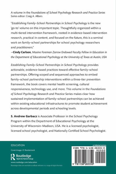 "Establishing Family-School Partnerships in School Psychology is the new 'go-to' volume on this important topic. Thoughtfully organized within a multi-tiered intervention framework, rooted in evidence-based intervention research, practical in content, and focused on the future, this is a seminal work on family-school partnerships for school psychology researchers and practitioners."