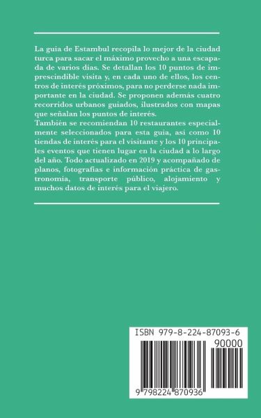 Estambul, la ciudad donde conviven, en un trazado urbanístico imposible, templos, sinagogas, iglesias, monasterio y mezquitas. Sus callejuelas, avenidas y plazas transmiten al visitante una mezcla de sabores romanos, medievales, europeos, asiáticos..., un sabor estambulita cien por cien. Esta guía recopila lo mejor de Estambul pensando en sacar el máximo provecho a una escapa de varios días. Escrita por una gran conocedora de la ciudad y con la inestimable aportación de colaborares locales, el lector encontrará en esta guía las claves y secretos para descubrir sus monumentos, museos, mezquitas, sus baños y mercados, así como también los cafés y restaurantes con más encanto de la antigua Constantinopla. Las propuestas de recorrido llevarán de la mano al viajero por los itinerarios urbanos más recomendables y los mapas detallados de los barrios le permitirán callejear libremente sin temor a perderse nada interesante.
