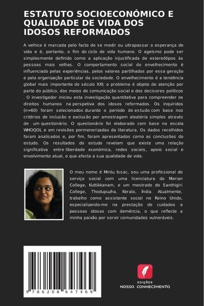 A velhice é marcada pelo facto de se medir ou ultrapassar a esperança de vida e é, portanto, o fim do ciclo de vida humano. O ageísmo pode ser simplesmente definido como a aplicação injustificada de estereótipos às pessoas mais velhas. O comportamento social do envelhecimento é influenciado pelas experiências, pelos valores partilhados por essa geração e pela organização particular da sociedade. O envelhecimento é a tendência global mais importante do século XXI; o problema é objeto de atenção por parte do público, dos meios de comunicação social e dos decisores políticos . O investigador iniciou esta investigação quantitativa para compreender os direitos humanos na perspetiva dos idosos reformados. Os inquiridos (n=60) foram selecionados durante o período de estudo com base nos critérios de inclusão e exclusão por amostragem aleatória simples através de um questionário. O questionário foi elaborado com base na escala WHOQOL e em revisões pormenorizadas da literatura. Os dados recolhidos foram analisados e, por fim, foram apresentados como as conclusões do estudo. Os resultados do estudo revelam que existe uma relação significativa entre liberdade económica, redes sociais, apoio social e envolvimento atual, o que afecta a sua qualidade de vida.