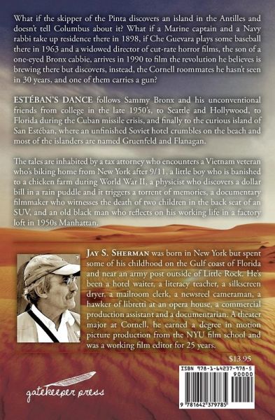What if the skipper of the Pinta discovers an island in the Antilles and doesn't tell Columbus about it? What if a Marine captain and a Navy rabbi take up residence there in 1898, if Che Guevara plays some baseball there in 1963 and a widowed director of cut-rate horror films, the son of a one-eyed Bronx cabbie, arrives in 1990 to film the revolution he believes is brewing there but discovers, instead, the Cornell roommates he hasn't seen in 30 years, and one of them carries a gun? ESTÉBAN'S DANCE follows Sammy Bronx and his unconventional friends from college in the late 1950's, to Seattle and Hollywood, to Florida during the Cuban missile crisis, and finally to the curious island of San Estéban, where an unfinished Soviet hotel crumbles on the beach and most of the islanders are named Gruenfeld and Flanagan. The tales are inhabited by a tax attorney who encounters a Vietnam veteran who's biking home from New York after 9/11, a little boy who is banished to a chicken farm during World War II, a physicist who discovers a dollar bill in a rain puddle and it triggers a torrent of memories, a documentary filmmaker who witnesses the death of two children in the back seat of an SUV, and an old black man who reflects on his working life in a factory loft in 1950s Manhattan. These stories are all about fathers, sons and daughters, first love and final loss, choices made amidst the chaos of our lives. And they are about reaching out from loneliness for family of one kind or another.