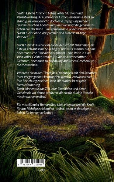 Gräfin Estella führt ein Leben voller Glamour und Verantwortung. Als Erbin eines Firmenimperiums steht sie ständig im Rampenlicht, doch eine Begegnung mit dem charismatischen Abenteurer Emanuel wirft ihr geordnetes Leben aus der Bahn. Eine gemeinsame, leidenschaftliche Nacht bleibt ohne Versprechen und hinterlässt tiefe Wunden. Doch führt das Schicksal die beiden erneut zusammen, als Estella sich auf seine Spur begibt und mit Emanuel auf eine abenteuerliche Expedition aufbricht - eine Reise in eine Welt voller Geister, uralter Rituale und unverhoffter Gefahren, aber auch zu einem unglaublichen Geschenk an die Menschheit. Während sie in den Tiefen des Dschungels mit den Schatten ihrer Vergangenheit konfrontiert werden, entwickelt sich ihre Beziehung zu einer Liebe, die stärker ist als jede Herausforderung. Doch können sie das Ziel ihrer Expedition und deren Geheimnis vor denen schützen, die sie für dunkle Zwecke missbrauchen wollen? Ein mitreißender Roman über Mut, Hingabe und die Kraft, für das Richtige zu kämpfen - selbst, wenn es das eigene Leben für immer verändert.