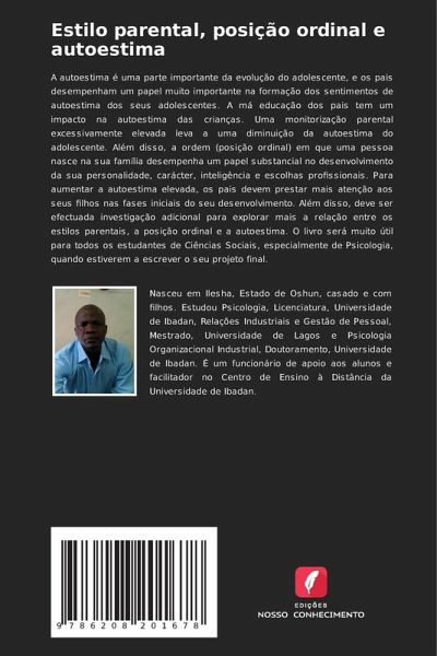 A autoestima é uma parte importante da evolução do adolescente, e os pais desempenham um papel muito importante na formação dos sentimentos de autoestima dos seus adolescentes. A má educação dos pais tem um impacto na autoestima das crianças. Uma monitorização parental excessivamente elevada leva a uma diminuição da autoestima do adolescente. Além disso, a ordem (posição ordinal) em que uma pessoa nasce na sua família desempenha um papel substancial no desenvolvimento da sua personalidade, carácter, inteligência e escolhas profissionais. Para aumentar a autoestima elevada, os pais devem prestar mais atenção aos seus filhos nas fases iniciais do seu desenvolvimento. Além disso, deve ser efectuada investigação adicional para explorar mais a relação entre os estilos parentais, a posição ordinal e a autoestima. O livro será muito útil para todos os estudantes de Ciências Sociais, especialmente de Psicologia, quando estiverem a escrever o seu projeto final.