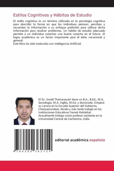 El estilo cognitivo es un término utilizado en la psicología cognitiva para describir la forma en que los individuos piensan, perciben y recuerdan la información o su enfoque preferido para utilizar dicha información para resolver problemas. Un hábito de estudio adecuado permite a un individuo cosechar una buena cosecha en el futuro. El logro académico es un factor importante para el éxito vocacional y general.Este libro ha sido traducido con Inteligencia Artificial.