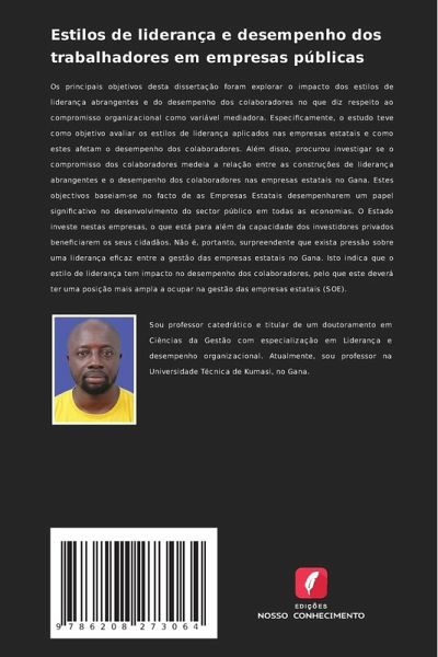 Os principais objetivos desta dissertação foram explorar o impacto dos estilos de liderança abrangentes e do desempenho dos colaboradores no que diz respeito ao compromisso organizacional como variável mediadora. Especificamente, o estudo teve como objetivo avaliar os estilos de liderança aplicados nas empresas estatais e como estes afetam o desempenho dos colaboradores. Além disso, procurou investigar se o compromisso dos colaboradores medeia a relação entre as construções de liderança abrangentes e o desempenho dos colaboradores nas empresas estatais no Gana. Estes objectivos baseiam-se no facto de as Empresas Estatais desempenharem um papel significativo no desenvolvimento do sector público em todas as economias. O Estado investe nestas empresas, o que está para além da capacidade dos investidores privados beneficiarem os seus cidadãos. Não é, portanto, surpreendente que exista pressão sobre uma liderança eficaz entre a gestão das empresas estatais no Gana. Isto indica que o estilo de liderança tem impacto no desempenho dos colaboradores, pelo que este deverá ter uma posição mais ampla a ocupar na gestão das empresas estatais (SOE).