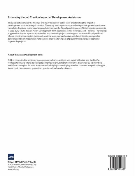 This publication shares findings on how to better estimate the impact of development assistance on job creation. It shares findings from a study that used input-output and computable general equilibrium models to customize estimation methods to improve jobs impact assessments. The study used 2010-2019 data on Asian Development Bank operations in Fiji, Indonesia, and Thailand. Its findings suggest that simpler input-output models may best suit projects that support substantial local purchases of non-construction capital goods and services. More comprehensive and data-intensive computable general equilibrium models can help capture the broad impact of programmatic policy support and large-scale projects.