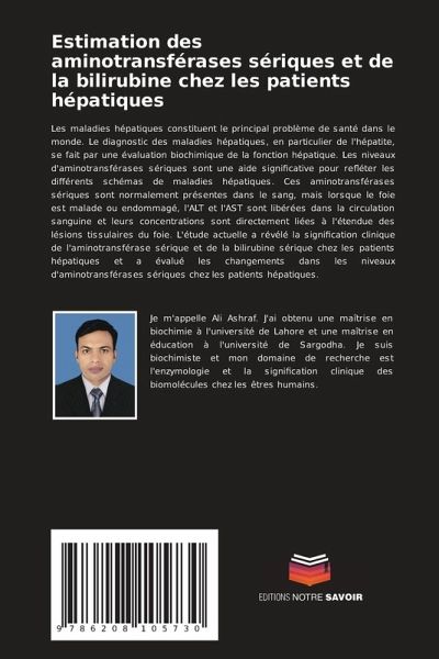 Les maladies hépatiques constituent le principal problème de santé dans le monde. Le diagnostic des maladies hépatiques, en particulier de l'hépatite, se fait par une évaluation biochimique de la fonction hépatique. Les niveaux d'aminotransférases sériques sont une aide significative pour refléter les différents schémas de maladies hépatiques. Ces aminotransférases sériques sont normalement présentes dans le sang, mais lorsque le foie est malade ou endommagé, l'ALT et l'AST sont libérées dans la circulation sanguine et leurs concentrations sont directement liées à l'étendue des lésions tissulaires du foie. L'étude actuelle a révélé la signification clinique de l'aminotransférase sérique et de la bilirubine sérique chez les patients hépatiques et a évalué les changements dans les niveaux d'aminotransférases sériques chez les patients hépatiques.