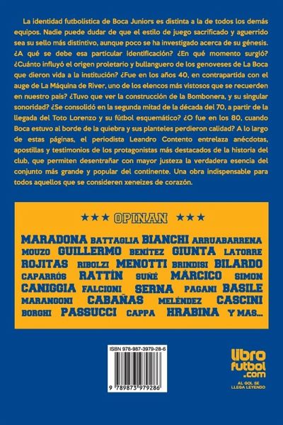 La identidad futbolística de Boca Juniors es distinta a la de todos los demás equipos. Nadie puede dudar de que el estilo de juego sacrificado y aguerrido sea su sello más distintivo, aunque poco se ha investigado acerca de su génesis. ¿A qué se debe esa particular identificación? ¿En qué momento surgió? ¿Cuánto influyó el origen proletario y bullanguero de los genoveses de La Boca que dieron vida a la institución? ¿Fue en los años 40, en contrapartida con el auge de La Máquina de River, uno de los elencos más vistosos que se recuerden en nuestro país? ¿Tuvo que ver la construcción de la Bombonera y su singular sonoridad? ¿Se consolidó en la segunda mitad de la década del 70, a partir de la llegada del Toto Lorenzo y su fútbol esquemático? ¿O fue en los 80, cuando Boca estuvo al borde de la quiebra y sus planteles perdieron calidad? A lo largo de estas páginas, el periodista Leandro Contento entrelaza anécdotas, apostillas y testimonios de los protagonistas más destacados de la historia del club, que permiten desentrañar con mayor justeza la verdadera esencia del conjunto más grande y popular del continente. Una obra indispensable para todos aquellos que se consideren xeneizes de corazón.