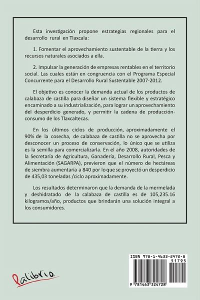 Esta investigación propone estrategias regionales para el desarrollo rural en Tlaxcala: 1. Fomentar el aprovechamiento sustentable de la tierra y los recursos naturales asociados a ella. 2. Impulsar la generación de empresas rentables en el territorio social. Las cuales están en congruencia con el Programa Especial Concurrente para el Desarrollo Rural Sustentable 2007-2012. El objetivo es conocer la demanda actual de los productos de calabaza de castilla para diseñar un sistema flexible y estratégico encaminado a su industrialización, para lograr un aprovechamiento del desperdicio generado, y permitir la cadena de producción- consumo de los Tlaxcaltecas. En los últimos ciclos de producción, aproximadamente el 90% de la cosecha, de calabaza de castilla no se aprovecha por desconocer un proceso de conservación, lo único que se utiliza es la semilla para comercializarla. En el año 2008, autoridades de la Secretaría de Agricultura, Ganadería, Desarrollo Rural, Pesca y Alimentación (SAGARPA), previeron que el número de hectáreas de siembra aumentaría a 840 por lo que se proyectó un desperdicio de 435,03 toneladas /ciclo aproximadamente. Los resultados determinaron que la demanda de la mermelada y deshidratado de la calabaza de castilla es de 105,235.16 kilogramos/año, productos que brindarán una solución integral a los consumidores.