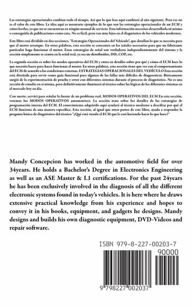 Las estrategias operacionales cambian todo el tiempo. Así que lo que leas aquí cambiará al año siguiente. Pero ese no es el valor de este libro. La idea aquí es mostrarte ejemplos de lo que son las estrategias operacionales de un ECM y cómo leerlas, ya que no se encuentran en ningún manual de servicio. Esta información necesitas desarrollarla tú mismo o conseguirla de publicaciones como esta. No es fácil, pero van muy lejos en el diagnóstico de los vehículos modernos. Este libro está dividido en dos secciones, "Estrategias Operacionales del Vehículo", que detallan lo que se necesita para que el motor arranque. En otras palabras, esta sección se concentra en las señales necesarias para que un fabricante particular haga funcionar el motor. Estas estrategias de señal son verdaderas independientemente del sistema y la sección simplemente se centra en la señal real, ya sea un distribuidor, DIS, COP, etc. La segunda sección es sobre los modos operativos del ECM y entra en detalles sobre por qué y cómo el ECM hace lo que necesita hacer para hacer funcionar el motor. En otras palabras, esta sección tiene que ver con el comportamiento del ECM de acuerdo a las condiciones externas. ESTRATEGIAS OPERACIONALES DEL VEHÍCULO Esta sección está diseñada para servir como guía funcional para algunas de las fallas más difíciles de diagnosticar. Básicamente surgió de la experimentación de prueba y error con diferentes sistemas durante el proceso de diagnóstico. No es una sección de estudio en sí misma, pero definitivamente iluminará al técnico sobre las lógicas de los diferentes sistemas en el mercado hoy en día. Con suerte, servirá para señalar la fuente de un problema real. MODOS OPERATIVOS DEL ECM En esta sección, veremos los MODOS OPERATIVOS automotrices. La sección trata sobre los detalles de las estrategias de programación interna del ECM. El conocimiento adquirido aquí ayudará al técnico moderno a descifrar por qué el ECM funciona de una manera específica. Esta sección, al igual que otras partes de este libro, ayuda a responder la pregunta básica de diagnóstico del técnico "¿Qué está viendo el ECM que le está haciendo hacer lo que hace?"