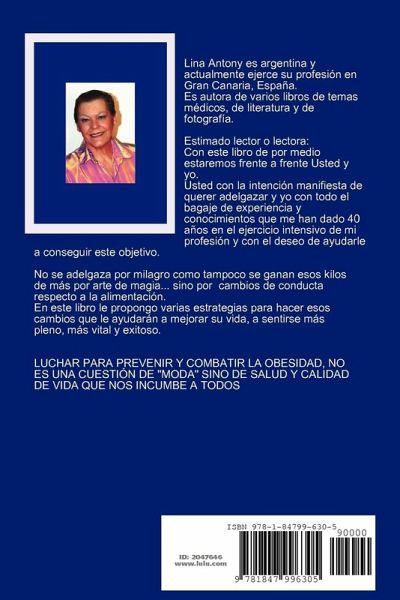 Este libro le ayuda a aumentar su autoestima, a verse y sentirse como lo que es: UNA PERSONA ÚNICA; a reforzar su proyecto de adelgazar; le hace conocer a fondo las causas y las consecuencias de la obesidad y le ayuda a prepararse para poder cambiar su conducta respecto a la alimentación, y así, alcanzar un peso saludable y mantenerlo para toda la vida.