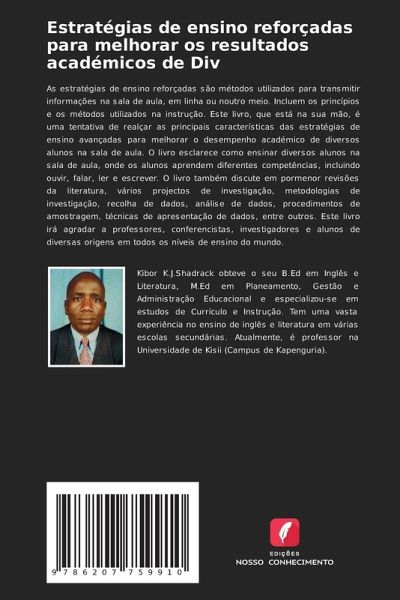 As estratégias de ensino reforçadas são métodos utilizados para transmitir informações na sala de aula, em linha ou noutro meio. Incluem os princípios e os métodos utilizados na instrução. Este livro, que está na sua mão, é uma tentativa de realçar as principais características das estratégias de ensino avançadas para melhorar o desempenho académico de diversos alunos na sala de aula. O livro esclarece como ensinar diversos alunos na sala de aula, onde os alunos aprendem diferentes competências, incluindo ouvir, falar, ler e escrever. O livro também discute em pormenor revisões da literatura, vários projectos de investigação, metodologias de investigação, recolha de dados, análise de dados, procedimentos de amostragem, técnicas de apresentação de dados, entre outros. Este livro irá agradar a professores, conferencistas, investigadores e alunos de diversas origens em todos os níveis de ensino do mundo.