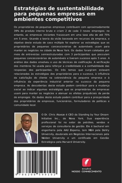 Os proprietários de pequenas empresas contribuem com aproximadamente 39% do produto interno bruto e criam 2 de cada 3 novos empregos; no entanto, as empresas iniciantes fracassam em uma taxa alta de até 75% em 5 anos. Usando a teoria da visão baseada em recursos da empresa, o objetivo deste estudo de caso múltiplo foi explorar as estratégias que os proprietários de pequenas concessionárias de automóveis usam para manter os negócios na cidade de Nova York. Os dados foram coletados por meio de entrevistas semiestruturadas com 3 participantes que possuíam pequenas concessionárias de automóveis e tiveram sucesso após 5 anos. A análise dos dados envolveu o uso de técnicas de codificação. A verificação dos membros foi usada para reforçar a credibilidade e a confiabilidade das respostas dos participantes. Os três temas que surgiram estavam relacionados às estratégias dos proprietários para o sucesso, à influência da satisfação do cliente na sobrevivência da pequena empresa e à influência da experiência industrial anterior no sucesso da pequena empresa. As descobertas deste estudo podem contribuir para a mudança social ao indicar algumas estratégias que os proprietários de empresas usam para manter os negócios e atenuar os efeitos prejudiciais da perda de empregos. Os dados deste estudo podem contribuir para a prosperidade dos proprietários de empresas, funcionários, formuladores de políticas e comunidade local.