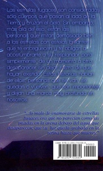 Las estrellas fugaces son consideradas sólo cuerpos que pasan al lado de la Tierra y cruzan el cielo. Sin embargo, más allá de eso, están las personas que imitan demasiado bien a las estrellas con estelas brillantes que te enceguecen y te obligan a acostumbrarte a su resplandor para simplemente, de un momento a otro, desaparecer sin dejar rastro de que hayan existido. Estas historias hablan de ellos, personas que se van, se quedan o vuelven, que son importantes y dejan una marca muy profunda en nosotros.