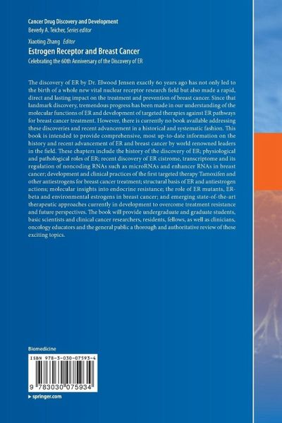 The discovery of ER by Dr. Elwood Jensen exactly 60 years ago has not only led to the birth of a whole new vital nuclear receptor research field but also made a rapid, direct and lasting impact on the treatment and prevention of breast cancer. Since that landmark discovery, tremendous progress has been made in our understanding of the molecular functions of ER and development of targeted therapies against ER pathways for breast cancer treatment. However, there is currently no book available addressing these discoveries and recent advancement in a historical and systematic fashion. This book is intended to provide comprehensive, most up-to-date information on the history and recent advancement of ER and breast cancer by world renowned leaders in the field. These chapters include the history of the discovery of ER; physiological and pathological roles of ER; recent discovery of ER cistrome, transcriptome and its regulation of noncoding RNAs such as microRNAs and enhancer RNAs in breast cancer; development and clinical practices of the first targeted therapy Tamoxifen and other antiestrogens for breast cancer treatment; structural basis of ER and antiestrogen actions; molecular insights into endocrine resistance; the role of ER mutants, ER-beta and environmental estrogens in breast cancer; and emerging state-of-the-art therapeutic approaches currently in development to overcome treatment resistance and future perspectives. The book will provide undergraduate and graduate students, basic scientists and clinical cancer researchers, residents, fellows, as well as clinicians, oncology educators and the general public a thorough and authoritative review of these exciting topics.
