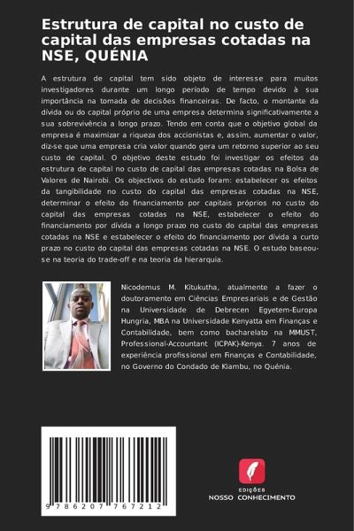 A estrutura de capital tem sido objeto de interesse para muitos investigadores durante um longo período de tempo devido à sua importância na tomada de decisões financeiras. De facto, o montante da dívida ou do capital próprio de uma empresa determina significativamente a sua sobrevivência a longo prazo. Tendo em conta que o objetivo global da empresa é maximizar a riqueza dos accionistas e, assim, aumentar o valor, diz-se que uma empresa cria valor quando gera um retorno superior ao seu custo de capital. O objetivo deste estudo foi investigar os efeitos da estrutura de capital no custo de capital das empresas cotadas na Bolsa de Valores de Nairobi. Os objectivos do estudo foram: estabelecer os efeitos da tangibilidade no custo do capital das empresas cotadas na NSE, determinar o efeito do financiamento por capitais próprios no custo do capital das empresas cotadas na NSE, estabelecer o efeito do financiamento por dívida a longo prazo no custo do capital das empresas cotadas na NSE e estabelecer o efeito do financiamento por dívida a curto prazo no custo do capital das empresas cotadas na NSE. O estudo baseou-se na teoria do trade-off e na teoria da hierarquia.