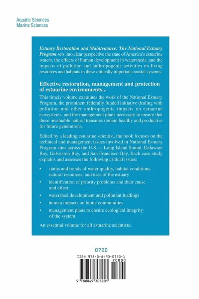This timely volume examines the work of the National Estuary Program, the prominent federally-funded initiative dealing with pollution and other anthropogenic impacts on estuarine ecosystems and the management plans necessary to ensure that these invaluable natural treasures remain healthy and productive for future generations. Estuary Restoration and Maintenance sets into clear perspective the state of America's estuarine waters, the effects of human development in watersheds, and the impacts of pollution and anthropogenic activities on living resources and habitats in these critically important coastal systems. Effective management and protection of estuarine environments Edited by a leading estuarine scientist, the book focuses on the technical and management issues involved in National Estuary Program sites across the United States-Long Island Sound, Delaware Bay, Galveston Bay, and San Francisco Bay. Each case study explains and assesses the following critical issues: -a historical description of the priority problems -status and trends of water quality, habitat conditions, natural resources and the uses of the estuary -human impacts on water quality and habitats, natural resources and the uses of the estuary -the links between pollutant loadings and watershed development, natural resources and the uses of the estuary -the identification of priority problems and their cause and effect, -management plans to ensure ecological integrity of the estuary Estuary Restoration and Maintenance covers the gamut of issues, from the technical assessment of problems to management action plans for the improvement of the environmental quality of estuaries. Features