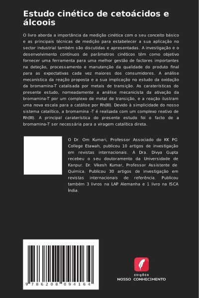 O livro aborda a importância da medição cinética com o seu conceito básico e as principais técnicas de medição para estabelecer a sua aplicação no sector industrial também são discutidas e apresentadas. A investigação e o desenvolvimento contínuos de parâmetros cinéticos têm como objetivo fornecer uma ferramenta para uma melhor gestão de factores importantes na deteção, processamento e manutenção da qualidade do produto final para as expectativas cada vez maiores dos consumidores. A análise mecanística da reação proposta e a sua implicação no estudo da oxidação da bromamina-T catalisada por metais de transição. As caraterísticas do presente estudo, nomeadamente a análise mecanicista da ativação da bromamina-T por um complexo de metal de transição, e a reação ilustram uma nova escala para a catálise por Rh(III). Devido à simplicidade do nosso sistema catalítico, a bromamina -T é realizada com um complexo reativo de Rh(III). A principal caraterística do presente estudo foi o facto de a bromamina-T ser necessária para a viragem catalítica direta.