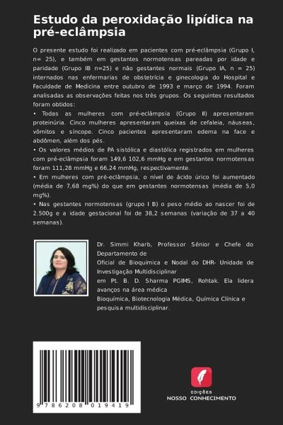 O presente estudo foi realizado em pacientes com pré-eclâmpsia (Grupo I, n= 25), e também em gestantes normotensas pareadas por idade e paridade (Grupo IB n=25) e não gestantes normais (Grupo IA, n = 25) internados nas enfermarias de obstetrícia e ginecologia do Hospital e Faculdade de Medicina entre outubro de 1993 e março de 1994. Foram analisadas as observações feitas nos três grupos. Os seguintes resultados foram obtidos:¿ Todas as mulheres com pré-eclâmpsia (Grupo II) apresentaram proteinúria. Cinco mulheres apresentaram queixas de cefaleia, náuseas, vômitos e síncope. Cinco pacientes apresentaram edema na face e abdômen, além dos pés.¿ Os valores médios de PA sistólica e diastólica registrados em mulheres com pré-eclâmpsia foram 149,6 102,6 mmHg e em gestantes normotensas foram 111,28 mmHg e 66,24 mmHg, respectivamente.¿ Em mulheres com pré-eclâmpsia, o nível de ácido úrico foi aumentado (média de 7,68 mg%) do que em gestantes normotensas (média de 5,0 mg%). ¿ Nas gestantes normotensas (grupo I B) o peso médio ao nascer foi de 2.500g e a idade gestacional foi de 38,2 semanas (variação de 37 a 40 semanas).