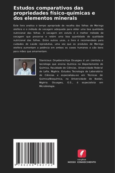 Este livro analisa o tempo apropriado de recolha das folhas de Moringa oleifera e o método de secagem adequado para obter uma boa qualidade nutricional das folhas. A secagem em estufa é o melhor método de secagem que preserva e retém uma boa quantidade de qualidade nutricional das folhas. Entre outros usos, o livro é recomendado para cuidados de saúde reprodutiva, uma vez que os produtos de Moringa oleifera aumentam a potência em ambos os sexos humanos e são bons para mães que amamentam.