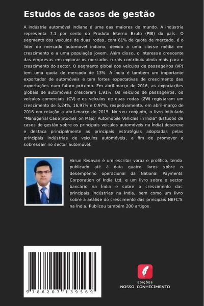 A indústria automóvel indiana é uma das maiores do mundo. A indústria representa 7,1 por cento do Produto Interno Bruto (PIB) do país. O segmento dos veículos de duas rodas, com 81% de quota de mercado, é o líder do mercado automóvel indiano, devido a uma classe média em crescimento e a uma população jovem. Além disso, o interesse crescente das empresas em explorar os mercados rurais contribuiu ainda mais para o crescimento do sector. O segmento global dos veículos de passageiros (VP) tem uma quota de mercado de 13%. A Índia é também um importante exportador de automóveis e tem fortes expectativas de crescimento das exportações num futuro próximo. Em abril-março de 2016, as exportações globais de automóveis cresceram 1,91%. Os veículos de passageiros, os veículos comerciais (CV) e os veículos de duas rodas (2W) registaram um crescimento de 5,24%, 16,97% e 0,97%, respetivamente, em abril-março de 2016 em relação a abril-março de 2015. No seu conjunto, o livro intitulado "Managerial Case Studies on Major Automobile Vehicles in India" (Estudos de casos de gestão sobre os principais veículos automóveis na Índia) descreve e destaca principalmente as principais estratégias adoptadas pelas principais indústrias de veículos automóveis, a fim de promover e sobressair no sector automóvel.