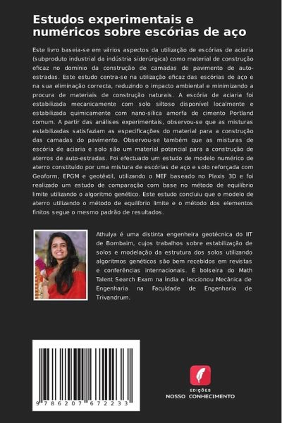 Este livro baseia-se em vários aspectos da utilização de escórias de aciaria (subproduto industrial da indústria siderúrgica) como material de construção eficaz no domínio da construção de camadas de pavimento de auto-estradas. Este estudo centra-se na utilização eficaz das escórias de aço e na sua eliminação correcta, reduzindo o impacto ambiental e minimizando a procura de materiais de construção naturais. A escória de aciaria foi estabilizada mecanicamente com solo siltoso disponível localmente e estabilizada quimicamente com nano-sílica amorfa de cimento Portland comum. A partir das análises experimentais, observou-se que as misturas estabilizadas satisfaziam as especificações do material para a construção das camadas do pavimento. Observou-se também que as misturas de escória de aciaria e solo são um material potencial para a construção de aterros de auto-estradas. Foi efectuado um estudo de modelo numérico de aterro constituído por uma mistura de escórias de aço e solo reforçada com Geoform, EPGM e geotêxtil, utilizando o MEF baseado no Plaxis 3D e foi realizado um estudo de comparação com base no método de equilíbrio limite utilizando o algoritmo genético. Este estudo concluiu que o modelo de aterro utilizando o método de equilíbrio limite e o método dos elementos finitos segue o mesmo padrão de resultados.