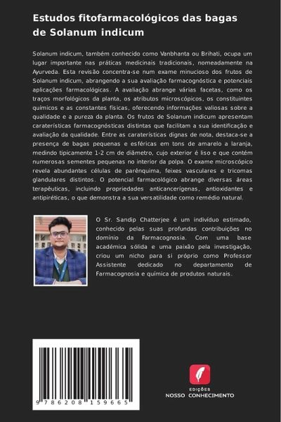 Solanum indicum, também conhecido como Vanbhanta ou Brihati, ocupa um lugar importante nas práticas medicinais tradicionais, nomeadamente na Ayurveda. Esta revisão concentra-se num exame minucioso dos frutos de Solanum indicum, abrangendo a sua avaliação farmacognóstica e potenciais aplicações farmacológicas. A avaliação abrange várias facetas, como os traços morfológicos da planta, os atributos microscópicos, os constituintes químicos e as constantes físicas, oferecendo informações valiosas sobre a qualidade e a pureza da planta. Os frutos de Solanum indicum apresentam caraterísticas farmacognósticas distintas que facilitam a sua identificação e avaliação da qualidade. Entre as caraterísticas dignas de nota, destaca-se a presença de bagas pequenas e esféricas em tons de amarelo a laranja, medindo tipicamente 1-2 cm de diâmetro, cujo exterior é liso e que contém numerosas sementes pequenas no interior da polpa. O exame microscópico revela abundantes células de parênquima, feixes vasculares e tricomas glandulares distintos. O potencial farmacológico abrange diversas áreas terapêuticas, incluindo propriedades anticancerígenas, antioxidantes e antipiréticas, o que demonstra a sua versatilidade como remédio natural.