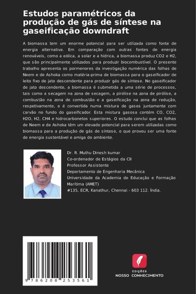 A biomassa tem um enorme potencial para ser utilizada como fonte de energia alternativa. Em comparação com outras fontes de energia renováveis, como a eólica, a solar e a hídrica, a biomassa produz CO2 e H2, que são principalmente utilizados para produzir biocombustível. O presente trabalho apresenta os pormenores da investigação numérica das folhas de Neem e de Ashoka como matéria-prima de biomassa para o gaseificador de leito fixo de jato descendente para produzir gás de síntese. No gaseificador de jato descendente, a biomassa é submetida a uma série de processos, tais como a secagem na zona de secagem, a pirólise na zona de pirólise, a combustão na zona de combustão e a gaseificação na zona de redução, respetivamente, e é convertida numa mistura de gases juntamente com carvão no fundo do gaseificador. Esta mistura gasosa contém CO, CO2, H2O, H2, CH4 e hidrocarbonetos superiores. O estudo conclui que as folhas de Neem e de Ashoka têm um elevado potencial para serem utilizadas como biomassa para a produção de gás de síntese, o que provou ser uma fonte de energia sustentável e amiga do ambiente.
