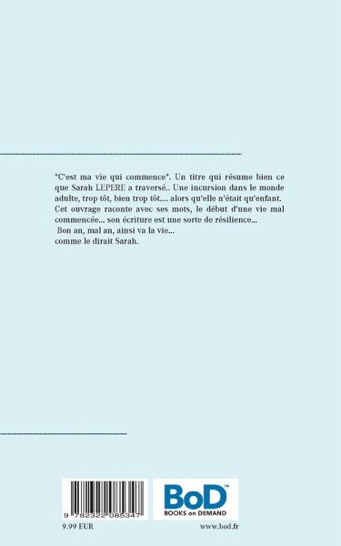 "C'est ma vie qui commence". Un titre qui résume bien ce que Sarah LEPERE a traversé.. Une incursion dans le monde adulte, trop tôt, bien trop tôt.... alors qu'elle n'était qu'enfant.