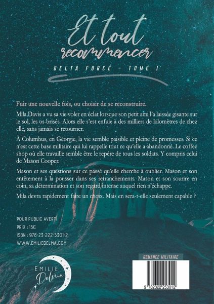 Fuir une nouvelle fois, ou choisir de se reconstruire.Mila Davis a vu sa vie voler en éclat lorsque son petit ami l'a laissée gisante sur le sol, les os brisés. Alors elle s'est enfuie à des milliers de kilomètres de chez elle, sans jamais se retourner.À Columbus, en Géorgie, la vie semble paisible et pleine de promesses. Si ce n'est cette base militaire qui lui rappelle tout ce qu'elle a abandonné. Le coffee shop où elle travaille semble être le repère de tous les soldats. Y compris celui de Mason Cooper.Mason et ses questions sur ce passé qu'elle cherche à oublier. Mason et son entêtement à la pousser dans ses retranchements. Mason et son sourire en coin, sa détermination et son regard intense auquel rien n'échappe.Mila devra rapidement faire un choix. Mais en sera-t-elle seulement capable ?
