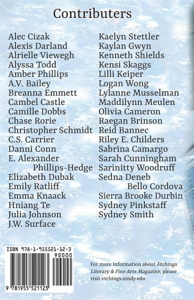 Etchings is the literary arts magazine of the University of Indianapolis. Produced twice a year by student-run Etchings Press, student editors solicit submissions, select pieces using a blind submission process, design and layout the magazine, and market it. Contributors include University of Indianapolis undergraduate and graduate students, faculty, staff, and alumni.