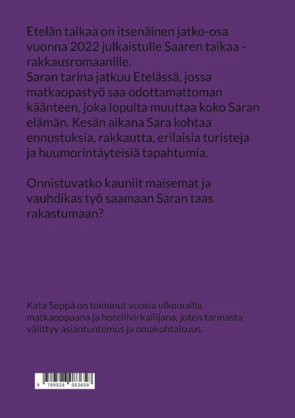 Etelän taikaa on itsenäinen jatko-osa vuonna 2022 julkaistulle Saaren taikaa -rakkausromaanille. Saran tarina jatkuu Etelässä, jossa matkaopastyö saa odottamattoman käänteen, joka lopulta muuttaa koko Saran elämän. Kesän aikana Sara kohtaa ennustuksia, rakkautta, paljon erilaisia turisteja ja huumorintäyteisiä tapahtumia. Onnistuvatko kauniit maisemat ja vauhdikas työ saamaan Saran rakastumaan?