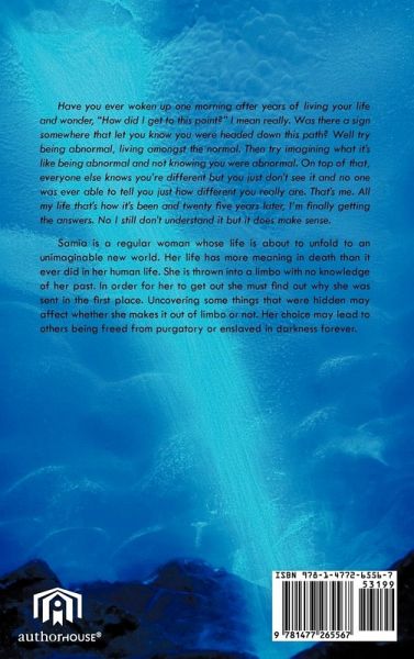 Have you ever woken up one morning after years of living your life and wonder, "How did I get to this point?" I mean really. Was there a sign somewhere that let you know you were headed down this path? Well try being abnormal, living amongst the normal. Then try imagining what it's like being abnormal and not knowing you were abnormal. On top of that, everyone else knows you're different but you just don't see it and no one was ever able to tell you just how different you really are. That's me. All my life that's how it's been and twenty five years later, I'm finally getting the answers. No I still don't understand it but it does make sense. Samia is a regular woman whose life is about to unfold to an unimaginable new world. Her life has more meaning in death than it ever did in her human life. She is thrown into a limbo with no knowledge of her past. In order for her to get out she must find out why she was sent in the first place. Uncovering some things that were hidden may affect whether she makes it out of limbo or not. Her choice may lead to others being freed from purgatory or enslaved in darkness forever.