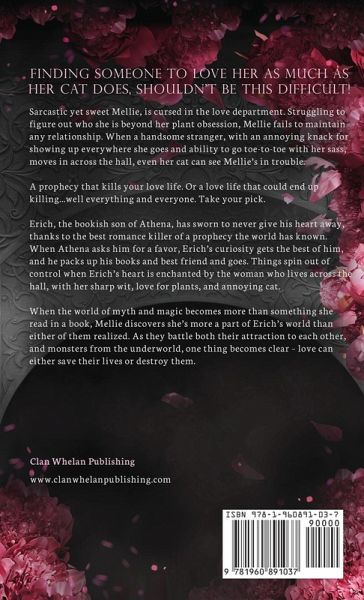 Finding someone to love her as much as her cat does, shouldn't be this difficult! Sarcastic yet sweet Mellie, is cursed in the love department. Struggling to figure out who she is beyond her plant obsession, Mellie fails to maintain any relationship. When a handsome stranger, with an annoying knack for showing up everywhere she goes and ability to go toe-to-toe with her sass, moves in across the hall, even her cat can see Mellie's in trouble. A prophesy that kills your love life. Or a love life that could end up killing...well everything and everyone. Take your pick. Erich, the bookish son of Athena, has sworn to never give his heart away, thanks to the best romance killer of a prophesy the world has known. When Athena asks him for a favor, Erich's curiosity gets the best of him, and he packs up his books and best friend and goes. Things spin out of control when Erich's heart is enchanted by the woman who lives across the hall, with her sharp wit, love for plants, and annoying cat. When the world of myth and magic becomes more than something she read in a book, Mellie discovers she's more a part of Erich's world than either of them realized. As they battle both their attraction to each other, and monsters from the underworld, one thing becomes clear - love can either save their lives or destroy them.