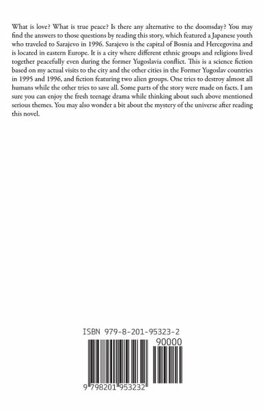 What is love? What is true peace? Is there any alternative to the doomsday? You may find the answers to those questions by reading this story, which featured a Japanese youth who traveled to Sarajevo in 1996. Sarajevo is the capital of Bosnia and Hercegovina and is located in eastern Europe. It is a city where different ethnic groups and religions lived together peacefully even during the former Yugoslavia conflict. This is a science fiction based on my actual visits to the city and the other cities in the Former Yugoslav countries in 1995 and 1996, and fiction featuring two alien groups. One tries to destroy almost all humans while the other tries to save all. Some parts of the story were made on facts. I am sure you can enjoy the fresh teenage drama while thinking about such above mentioned serious themes. You may also wonder a bit about the mystery of the universe after reading this novel.