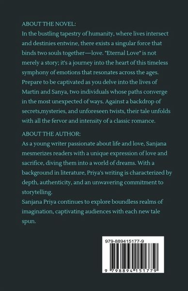 In the vast world of billions of people, two individuals find themselves drawn together by fate. As they explore their connection, they uncover secrets that could alter everything. With each revelation, they must confront their fears and desires, navigating a journey filled with twists and turns. Therefore, esteemed reader, I invite you to embark on this unforgettable journey, to immerse yourself in the pages of "Eternal Love," and discover a realm where passion knows no bounds and love knows no end. May you find comfort in the enchanting odyssey of Martin and Sanya, and may you emerge with a revitalized sense of hope and wonder. Yet, as destiny weaves its intricate tapestry, casting shadows over their path, Martin and Sanya confront the ultimate trial of their love. When fate threatens to tear them asunder, will they defy the odds and carve a new path together? Or will they succumb to the forces intent on tearing them apart, their love fading into the annals of time? Only time will reveal the answer as they teeter on the edge of fate, their hearts intertwined in an eternal dance of love. Therefore, cherished reader, I leave you with this inquiry: can love truly conquer all? As you accompany Martin and Sanya on their voyage, contemplate the depths of their devotion and the potency of their love. And perchance, within the pages of "Eternal Love," you may discover the resolution you seek.