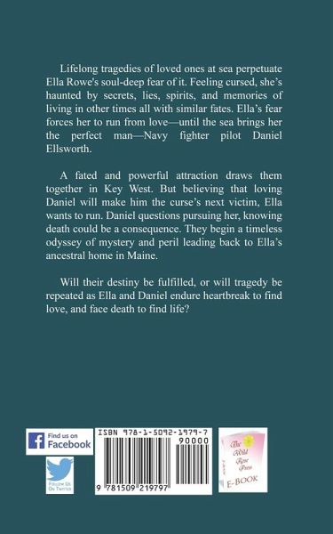 Lifelong tragedies of loved ones at sea perpetuate Ella Rowe's soul-deep fear of it. Feeling cursed, she’s haunted by secrets, lies, spirits, and memories of living in other times all with similar fates. Ella’s fear forces her to run from love—until the sea brings her the perfect man—Navy fighter pilot Daniel Ellsworth. A fated and powerful attraction draws them together in Key West. But believing that loving Daniel will make him the curse’s next victim, Ella wants to run. Daniel questions pursuing her, knowing death could be a consequence. They begin a timeless odyssey of mystery and peril leading back to Ella’s ancestral home in Maine. Will their destiny be fulfilled, or will tragedy be repeated as Ella and Daniel endure heartbreak to find love, and face death to find life?