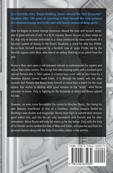 In a futuristic time, Bruno Redding, doctor aboard the "USS Encounter" awakens after 750 years in cryosleep to find himself the only survivor of a doomed voyage lost in the vast and lonely cosmos of deep space. Here he begins to notice strange presences aboard the lone and ancient vessel, one of good and one of evil. In a fit of impulse, Bruno rescues an alien visitor on his ship only to become embroiled in a chase conducted by slave merchants of a futuristic system of slavery in the Estaris Quadrant, a place his ship has drifted. Bruno finds himself hampered by a fiendish crew of Space Pirates led by the fiendish captain John Mars, who intend on selling Redding as an article from the past. Bruno is then sent upon a self-imposed mission to outmaneuver his captors and rescue their other victims. This brings him into crossing paths with a kindred spirit named Pamela who is held captive in a moon-base ruled with an iron hand by a heartless dictator named David Eidon. It is through his travels with the alien creature and Pamela that Bruno finds himself as more than a match for the cruel system that wishes to destroy what good remains in the "world"- what Bruno perceives as home. Only in fighting for the humanity of others will Bruno uphold his own. However, an even more formidable foe comes to threaten Bruno, this being his own demons manifested in that of a heartless, soulless creature fueled by Redding's own doubts and misgivings. Bruno must fight to uphold what remains good within him, and this he can only accomplish with Pamela and his alien companion. Alone Bruno will only fall victim as he has before. Only with the help of his friends can he combat the likes of Mars and Eidon, and save his soul from his personal demon along with the lives of countless others in the process.