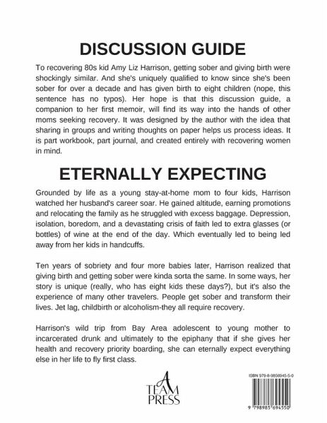 The Eternally Expecting Group Discussion Guide is an interactive workbook thoughtfully designed to be compatible with Amy Liz Harrison's debut memoir. Packed with engaging exercises and insightful prompts that correspond with each section of the book, this guide is here to offer a deeper understanding of both Eternally Expecting and yourself. Whether you're seasoned in recovery or sober-curious, this workbook is your dedicated companion. Prepare to embark on a transformative learning experience that will empower you to grasp concepts, apply principles, and achieve your recovery goals.