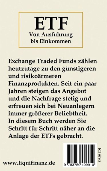 Exchange Traded Funds zählen heutzutage zu den günstigeren und risikoärmeren Finanzprodukten. Seit ein paar Jahren steigen das Angebot und die Nachfrage stetig und erfreuen sich bei Neuanlegern immer größerer Beliebtheit. In diesem Buch werden Sie Schritt für Schritt näher an die Anlage der Exchange Traded Funds gebracht.