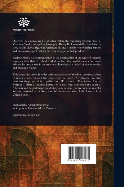 Discover the captivating life of Ethan Allen, the legendary "Robin Hood of Vermont," in this compelling biography. Henry Hall masterfully chronicles the story of this pivotal figure in American history, a leader whose daring exploits and unwavering spirit defined the early struggle for independence. Explore Allen's rise to prominence as the commander of the Green Mountain Boys, a militia that fiercely defended the land that would become Vermont. Witness his crucial role in the American Revolution, a period of intense conflict and profound change. This biography delves into the political landscape of the time, revealing Allen's complex character and the challenges he faced. A historical account meticulously prepared for republication, "Ethan Allen: The Robin Hood of Vermont" offers a timeless portrait of a man who embodied the spirit of rebellion and helped shape the destiny of a nation. It is an essential read for anyone interested in the American Revolution and the colorful history of the United States. This work has been selected by scholars as being culturally important, and is part of the knowledge base of civilization as we know it. This work is in the public domain in the United States of America, and possibly other nations. Within the United States, you may freely copy and distribute this work, as no entity (individual or corporate) has a copyright on the body of the work. Scholars believe, and we concur, that this work is important enough to be preserved, reproduced, and made generally available to the public. We appreciate your support of the preservation process, and thank you for being an important part of keeping this knowledge alive and relevant.